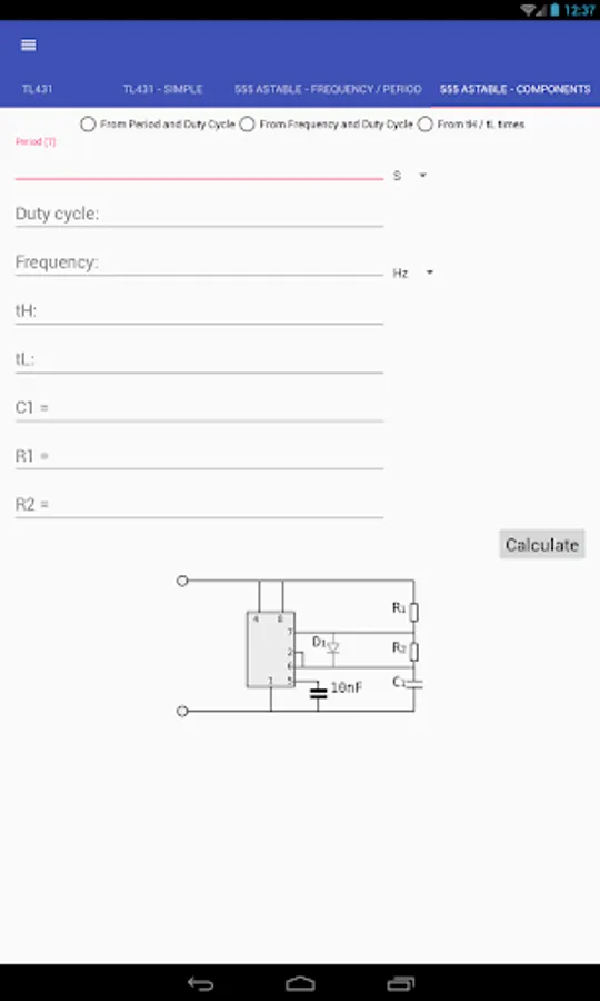 ✔ 555 (NE555 and clones) AStable, Monostable (frequency, period, components values)