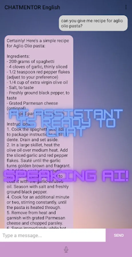 But ChatMentor goes beyond text-based interactions. It leverages cutting-edge speech recognition technology, allowing you to simply speak your queries. Your spoken words are instantly translated into text, enabling seamless communication with the AI assistant. And that's not all – ChatMentor incorporates advanced text-to-speech capabilities, ensuring that the AI's responses are delivered back to you in a lifelike and natural voice.