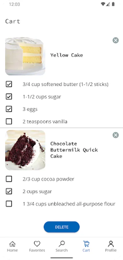 You also can use a shopping list. Just add the desired product directly from the recipe to the shopping list.