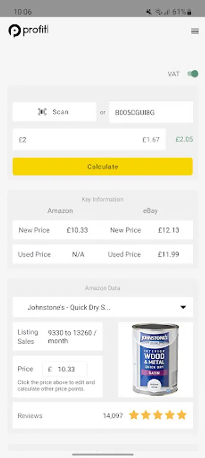 Profitl determines the best FBA deals wherever you are - in-store or online - through two solutions for one monthly price. Scan any item and analyse the data in a split second.