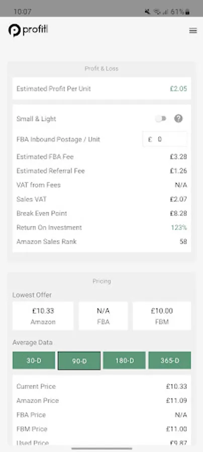 Estimated FBA and referral fees - giving you a clear insight into the fees you’ll be paying Amazon.