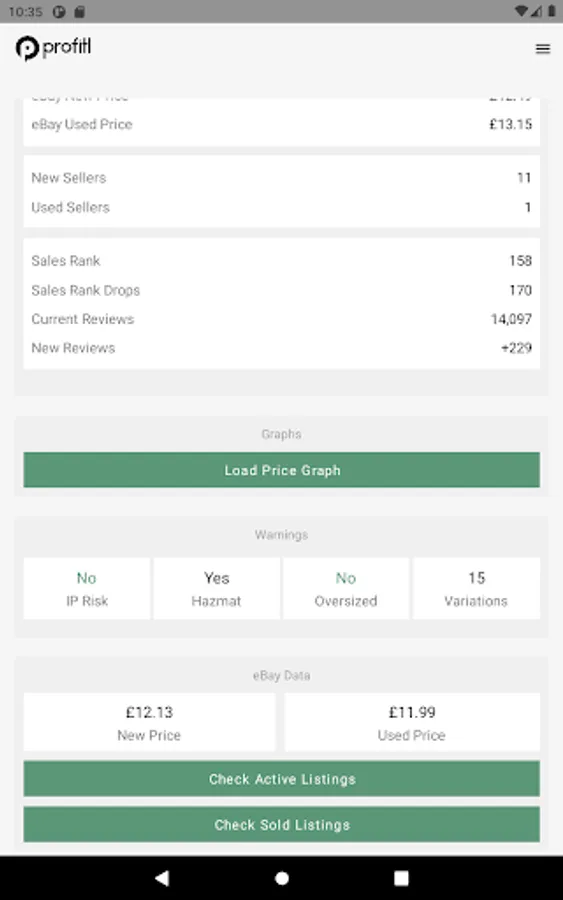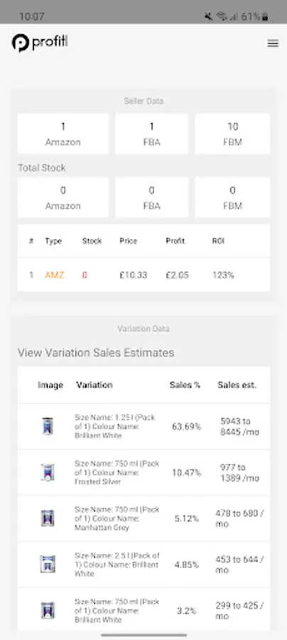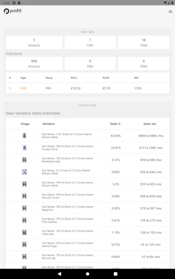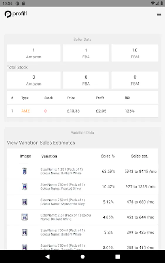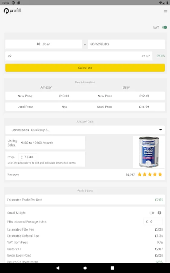 VAT, break even, return on investment and profit per unit estimates - so you can understand a product's potential profitability.