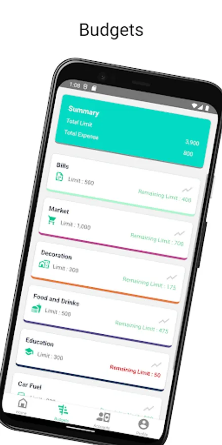 Record your daily expenses by adding spends to the app and categorize them by the budget you have created. You can see how much you've spent and how much you have left for each budget.