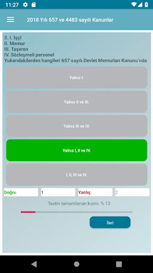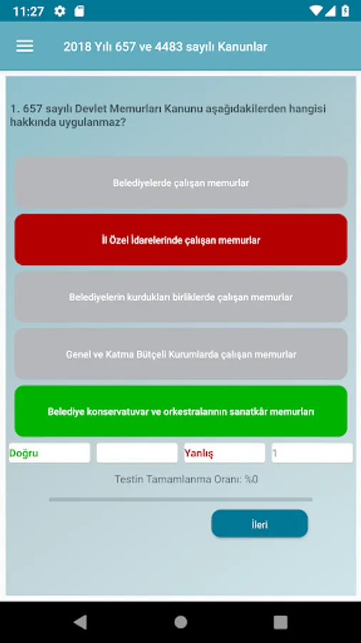 Ability to solve exams according to species (Laws numbered 657 and 4483, Ministry Organization, Duties and Legislation, Teaching Practices, History of Turkish Revolution and Atatürkism, all Tests)