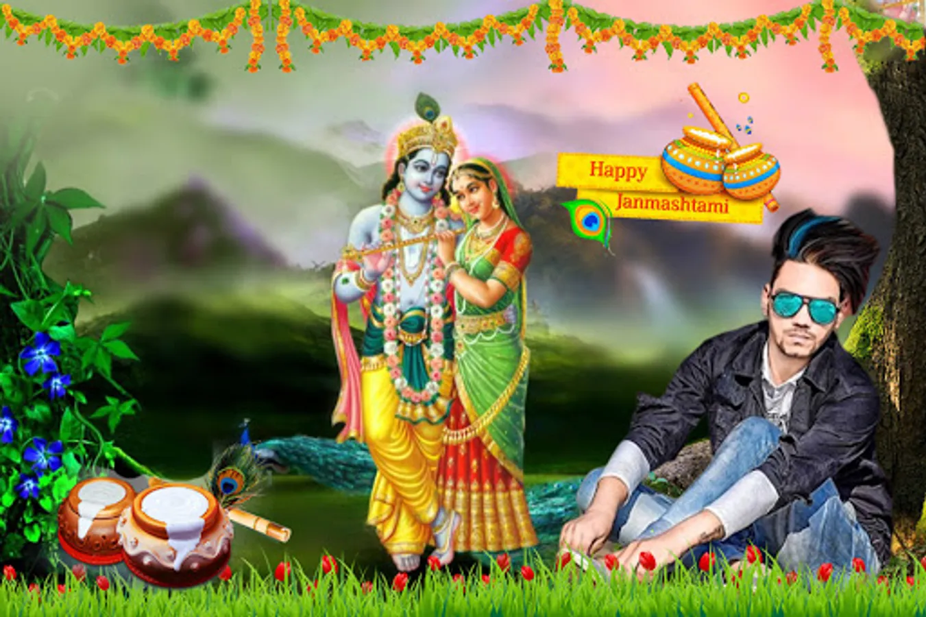 Lord Krishna is known for his notorious acts all his childhood and also imposes an epitome of kindness and helpful nature. Lord Krishna symbolizes that each task or each difficulty that humans face can be dealt with positivity and calm mind. Embellish your images with the stunning Lord Krishna background photo frames and Lord Krishna stickers via the Krishna Photo Editor with Text app.