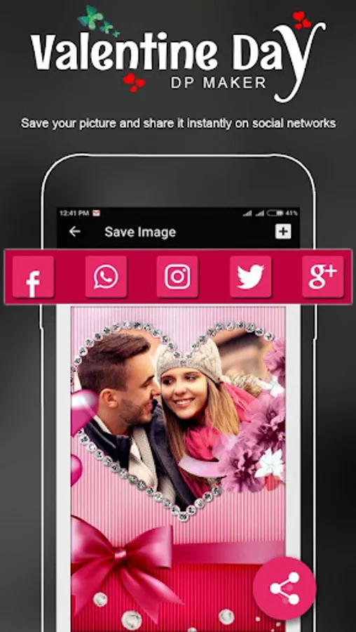 ✤ Share special valentine photo frame with your friends or family members via social media.