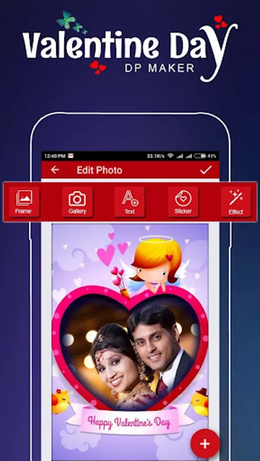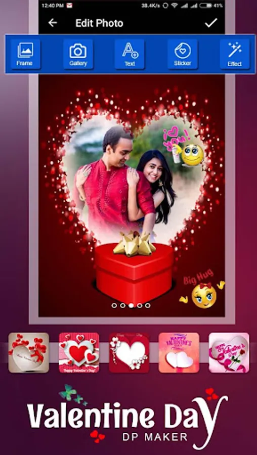 Happy Valentine DP Maker 2018 is an easy way to express your love and memories to your lover. You can create Happy Valentine more elegant with Valentine Stickers, Themes, Relevant Music, filters by Valentine Profile Maker. with Valentine Profile Maker You can arrange the photos in order with the perfect Music & Backgrounds.