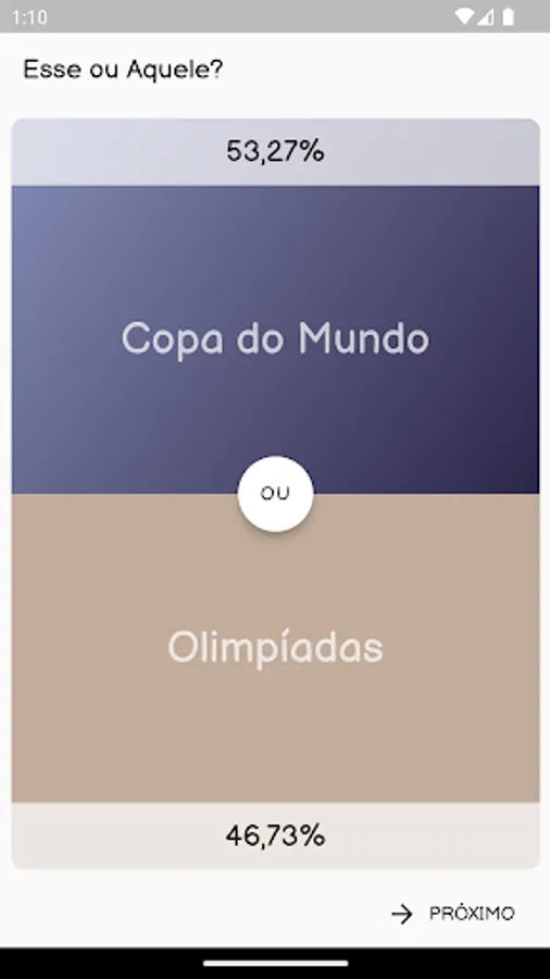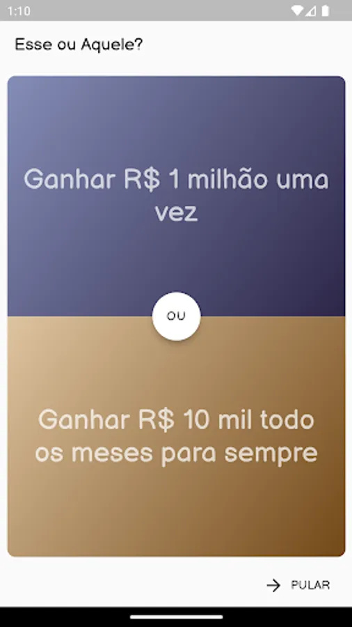 Answer dilemmas from different topics by choosing one of the two options and find out if you think the same or different from the majority.