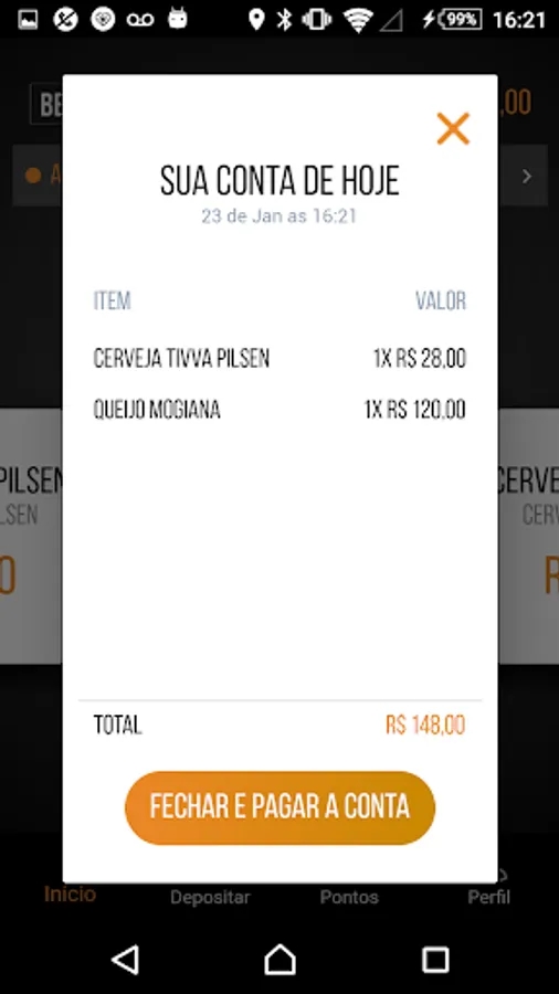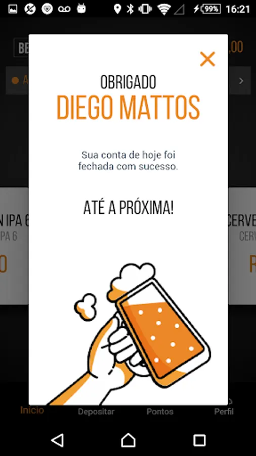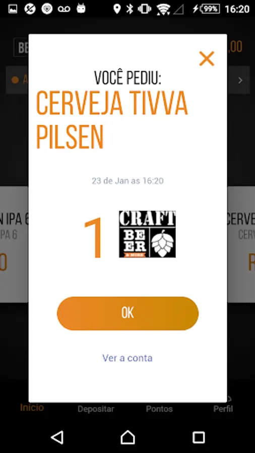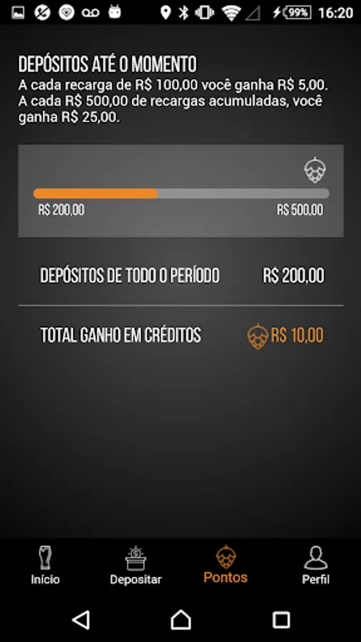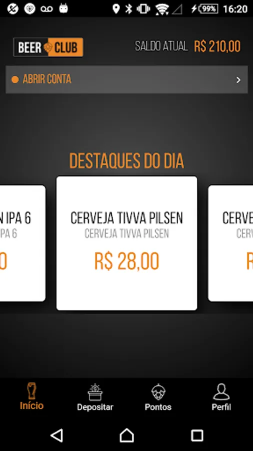 You see through your app the promotions of Chopes do Dia, the progress of your open account, your order history and your balance. By recharging your app balance, you earn credits according to the values. Each recharge of $ 100, you earn $ 5. Each $ 500 of recharges you accumulate, you earn another $ 25. The more you recharge, the more credits you earn to take your beer!