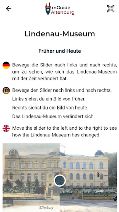 If you spot a QR code at an attraction, you can scan it with the mGuide to learn more. Or you allow the app access to your location to let you navigate directly to the most interesting places.