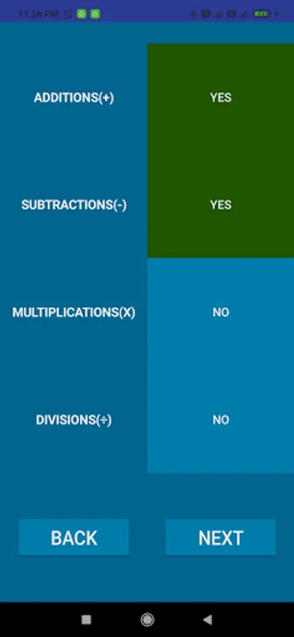 Just tap on to 'START' button to generate a new question of already selected maths operation type.