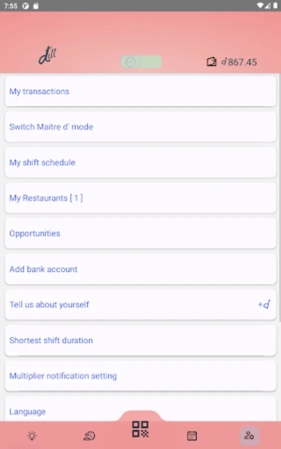 dill Server is the waiters' interface required for working at restaurants that have joined the dill network. It allows you to find opportunities, schedule your work and improve your work in order to earn more.