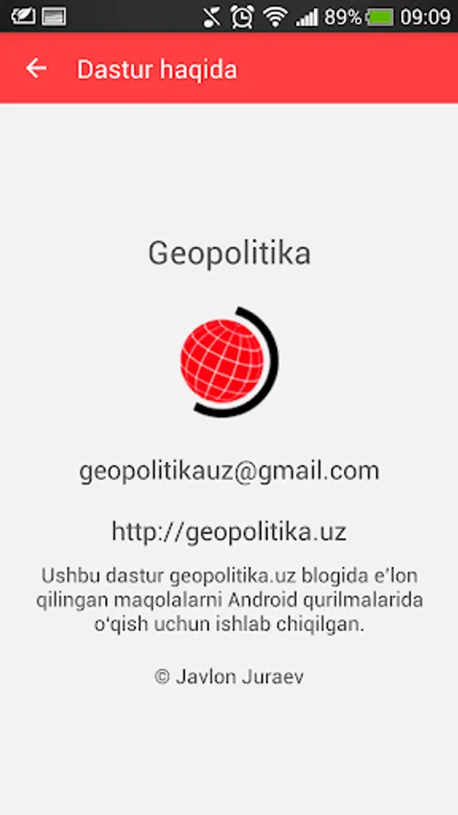 Geopolitika.uz blogi har qanday siyosiy va diniy qarashlardan holi bo'lgan mustaqil nashrdir. Blogda dunyoda yuz berayotgan geopolitik jarayonlarga holis va betaraf baho beruvchi maqolalar e'lon qilib boriladi. Ushbu maqolalar mazmuniga ko'ra ilmiy-pedagogik yo'nalishda bo'lib, o'zbek yoshlarining siyosiy ongini o'stirish hamda jahonda yuz berayotgan geopolitik voqea va hodisalarga to'g'ri baho bergan holda yondashishga yordam berishni ko'zlagan.
