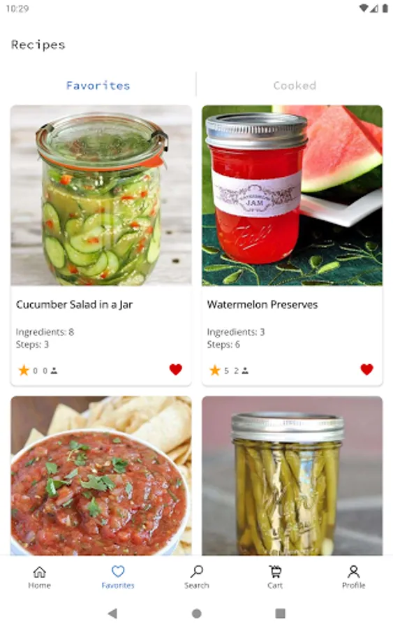 • You can choose the recipes you like and keep them in your favorites. You can save cooked recipes
