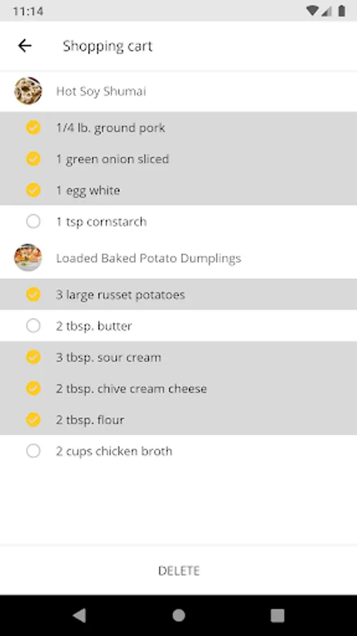 You also can use a shopping list. Just add the desired product directly from the recipe to the shopping list.