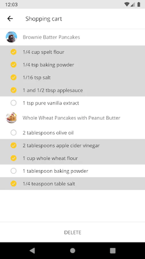 You also can use a shopping list. Just add the desired product directly from the recipe to the shopping list.