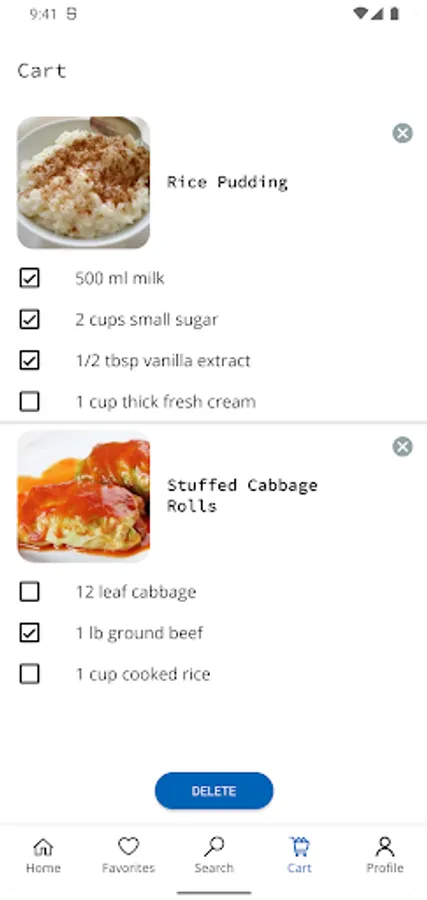 You also can use a shopping list. Just add the desired product directly from the recipe to the shopping list.