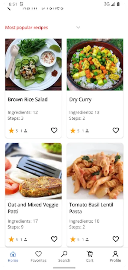 You can choose your liked recipes and keep them in your favorites.
