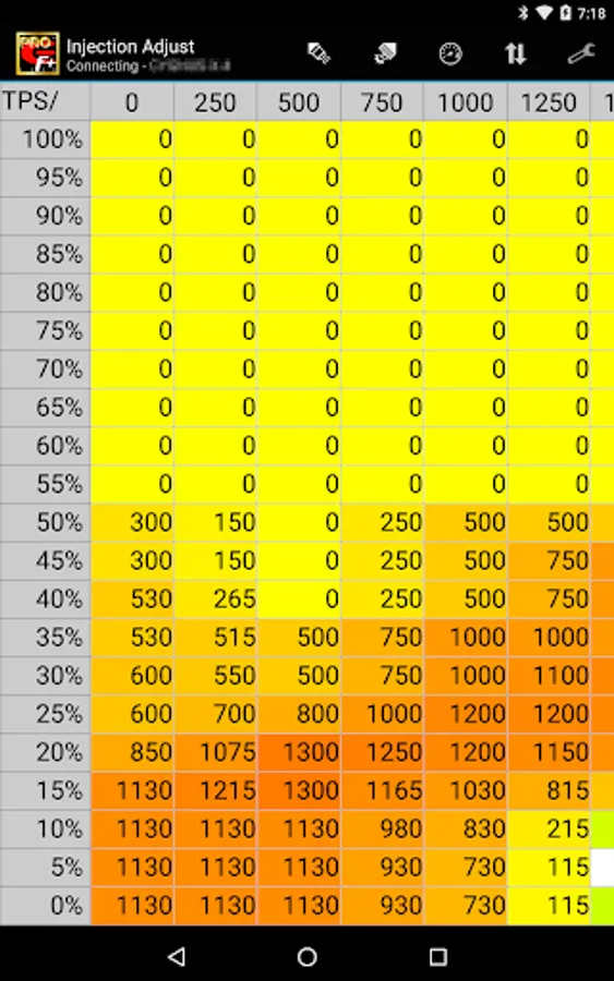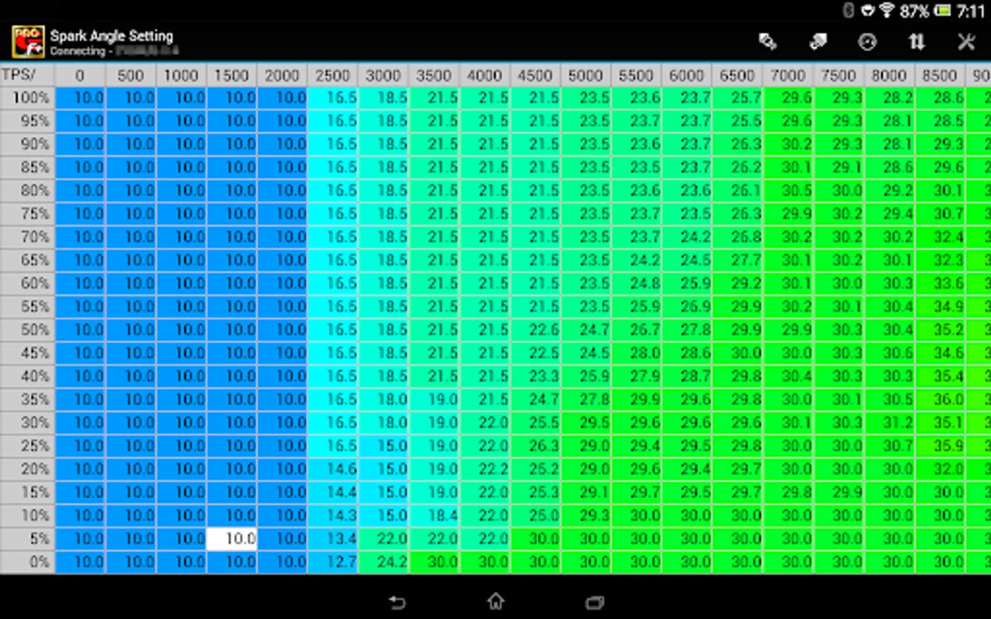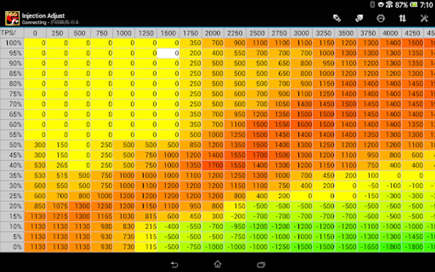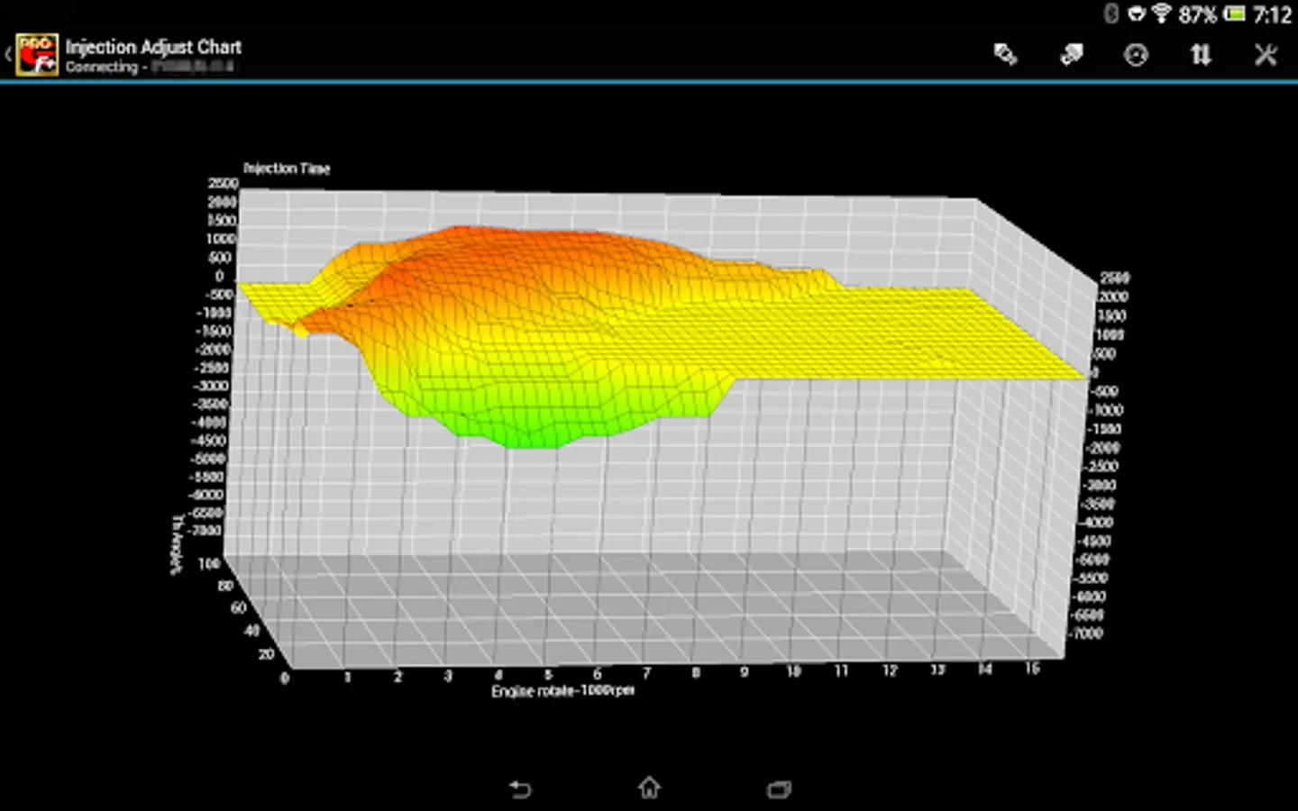 - The fuel map, showing real-time engine speed, throttle position of the current.