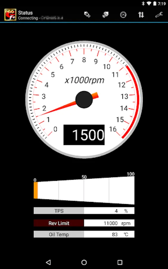 Application for Enigma FirePlus installs basic application free of charge. In the free application you can connect with Enigma FirePlus and display the tachometer and Throttle position and you can try to see if your smartphone can connect with Enigma FirePlus with BlueTooth.