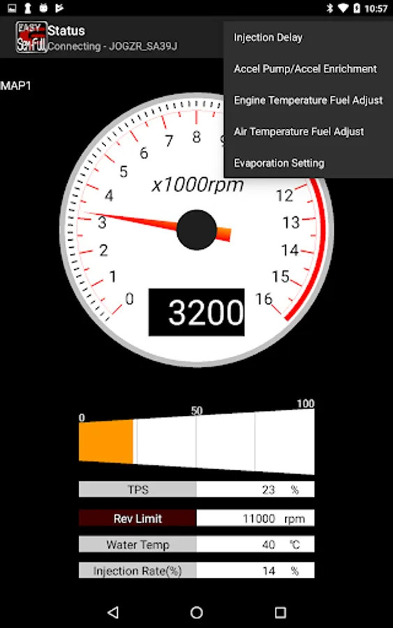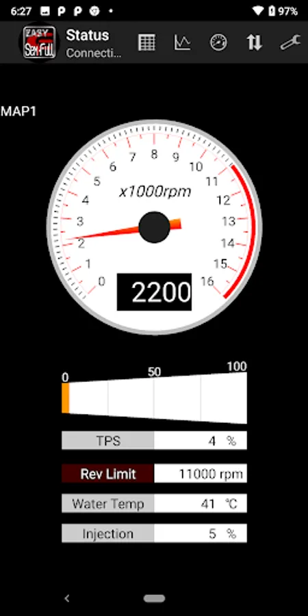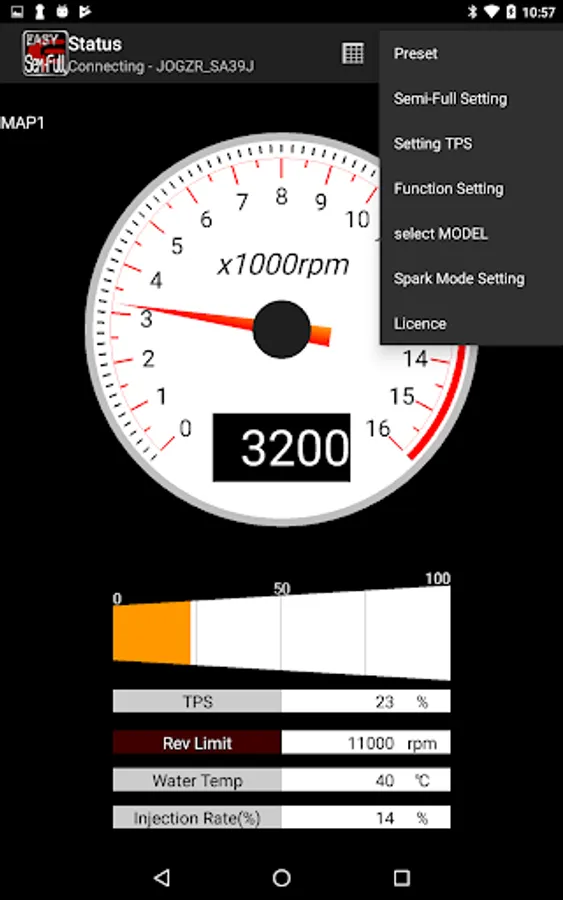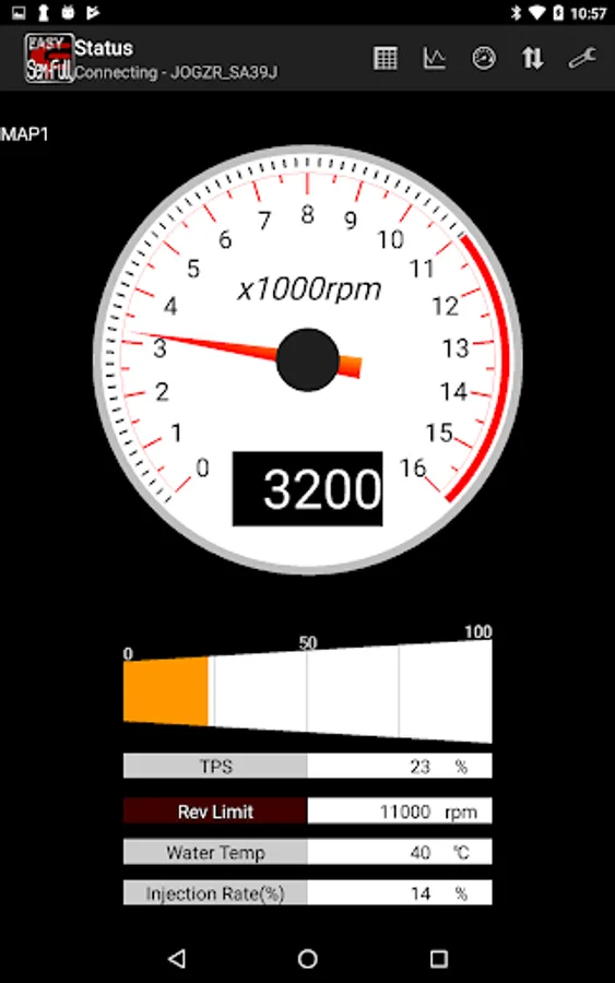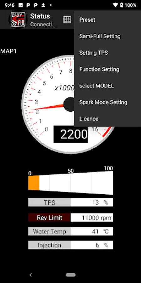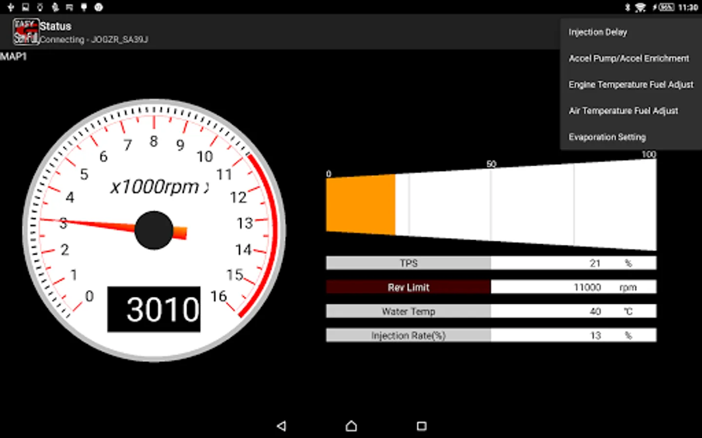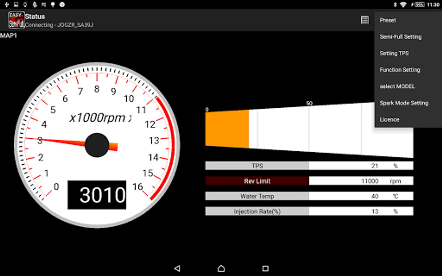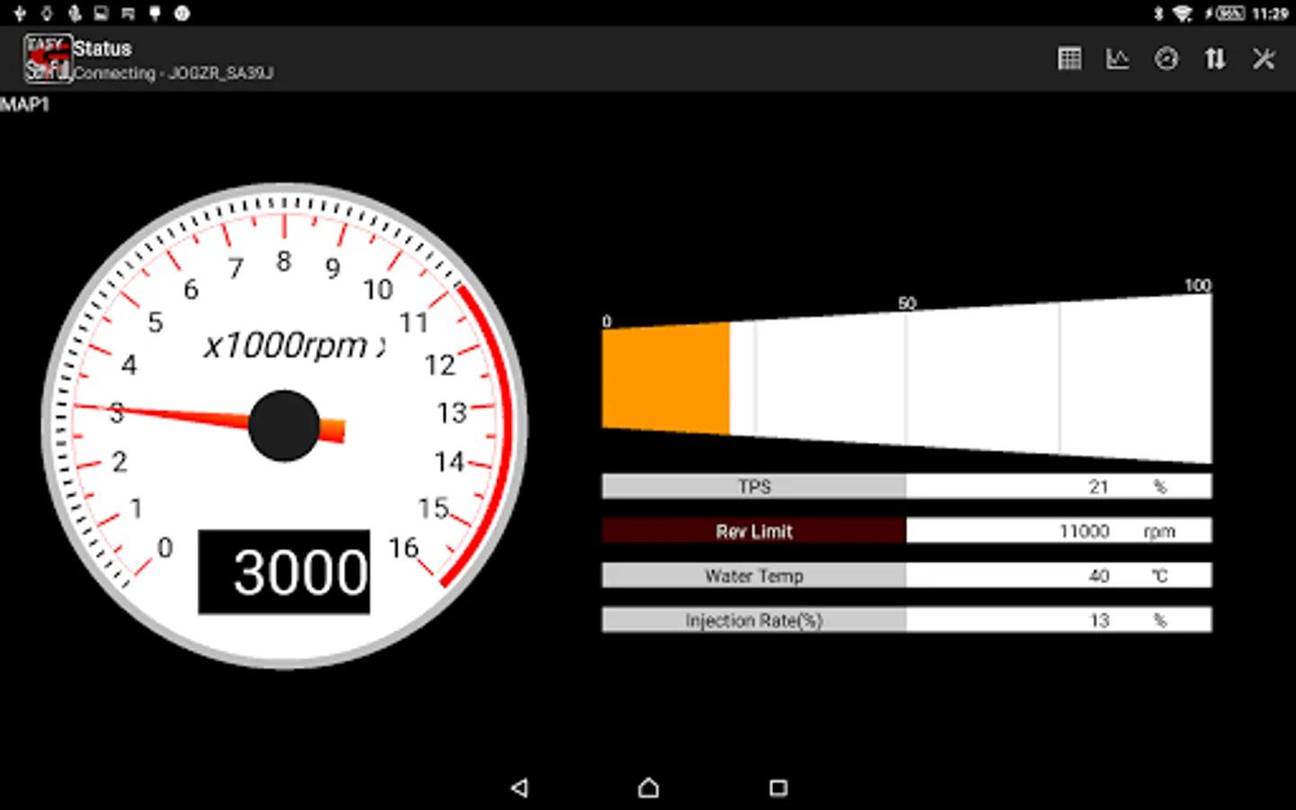 This application can be downloaded for free. When it is free, you can connect with all Enigma Semi-Full, but only the tachometer screen is displayed. (Only tachometer and TPS are displayed).