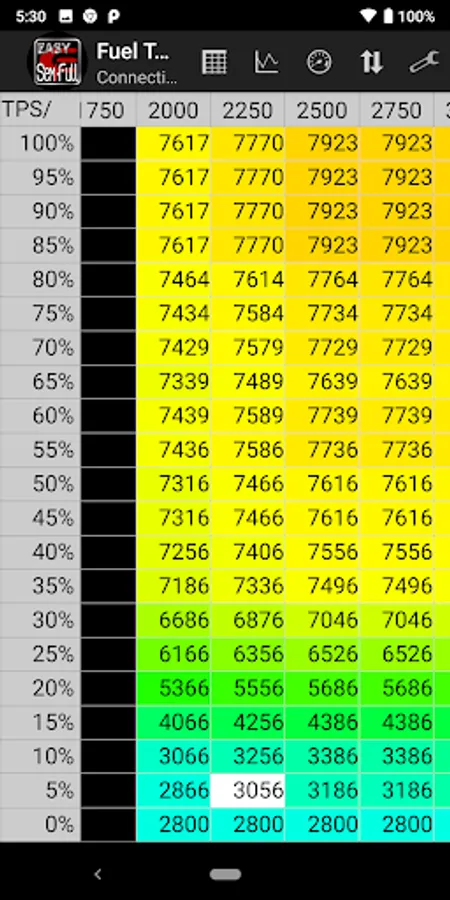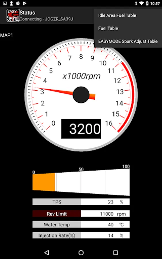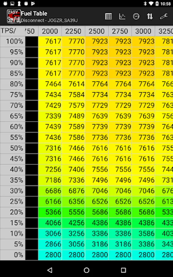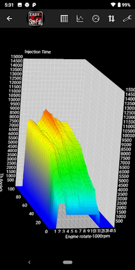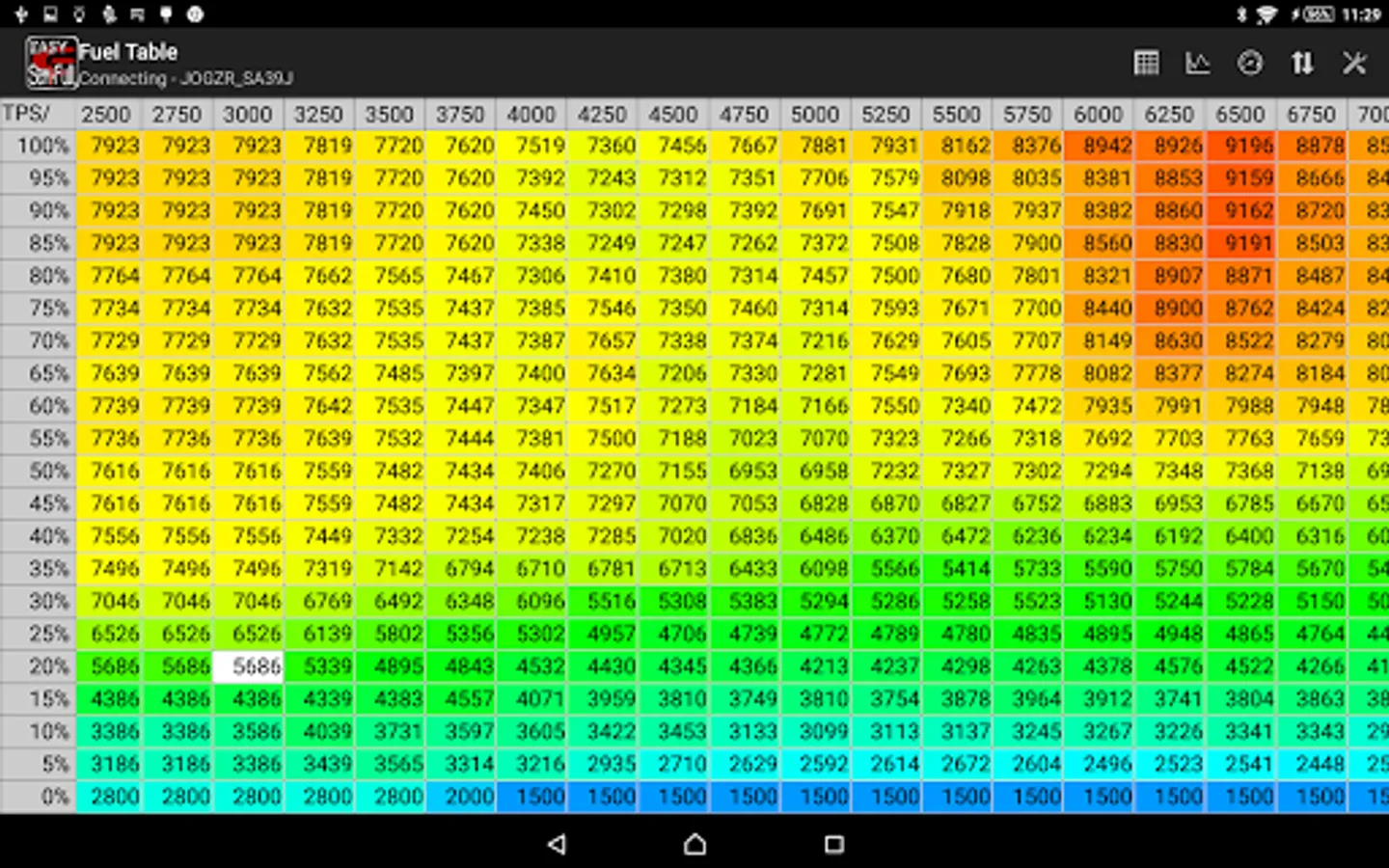 - Display the current engine speed and throttle position in real time in the fuel & ignition adjust map.