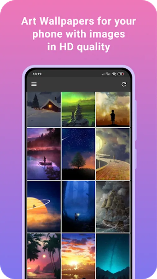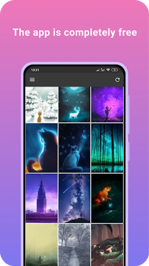 The app will open up a world of excellent art Wallpapers for your Android phone or tablet. Wallpapers are manually checked and sorted before entering the catalog, which guarantees high quality images.