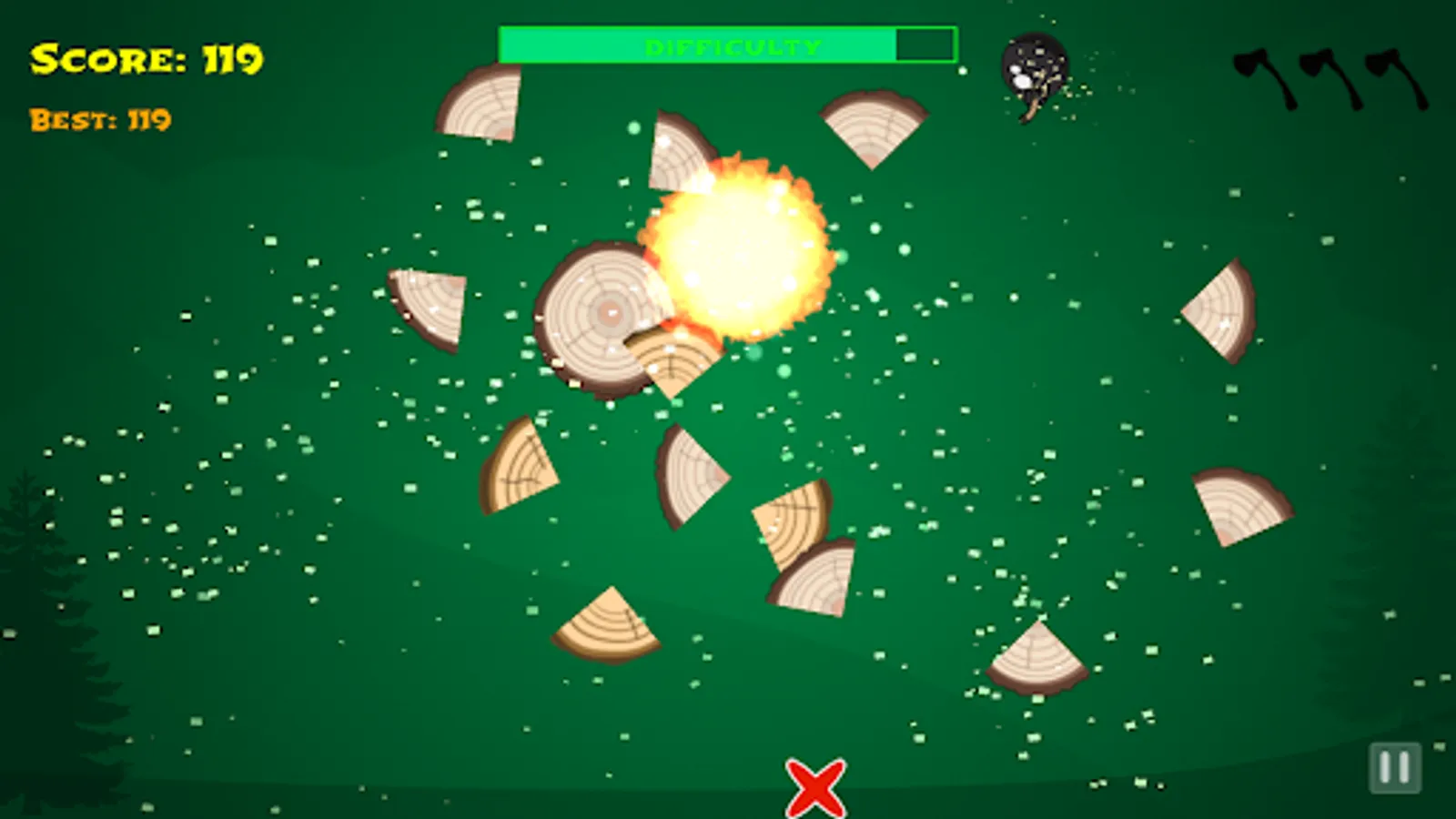To play you need to chop the wood logs in a slicing style and try do not miss any logs. Avoid bombs!