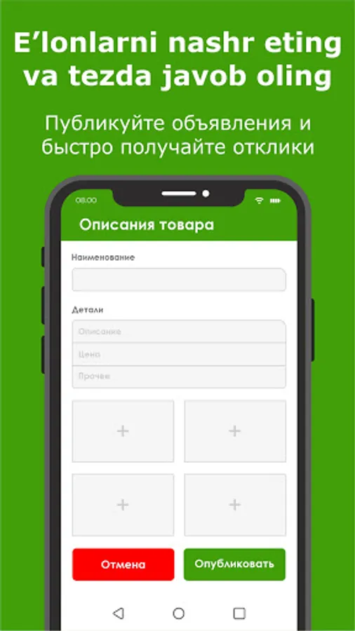 ZOOSAVDO - agro sohasidagi eng katta, eng kulai internet bozor. Bu bozorda siz mol, kuy, parranda, ot, it, musuk, em-hashak, usimliklar, kuhatlar va veterinary medicine dorilarini sotishingiz yoki sotib olishingiz mumkin. ZOOSAVDO - yangi bozor. ZOOSAVDO ilovasini yuklab oling wa undan bepul foydalaning. Biz bilan oson.
