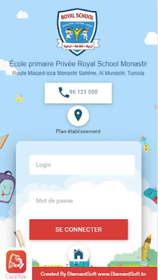 To access the application and have a login and password, simply contact the following number 0021699701702 or by mail: contact@DiamantSoft.tn