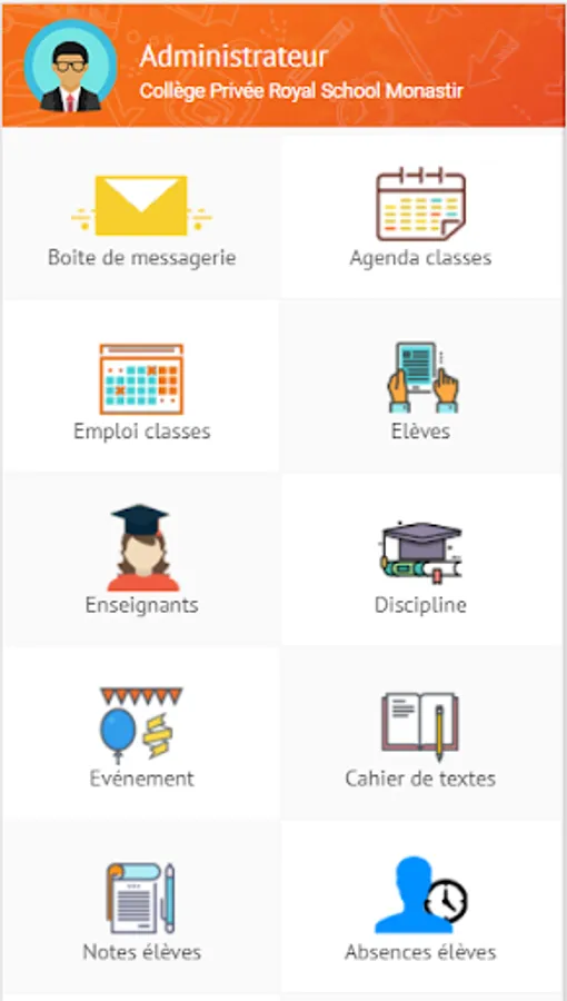 3- Session Editor: (limited access) allows the employee responsible for the school to insert the news, schedule, homework, dates exams, Notes, Disciplines, couriers, payments, events.