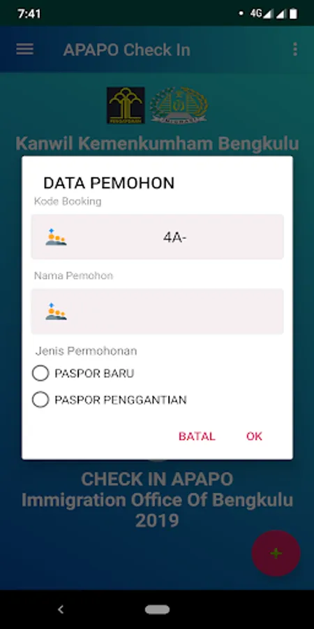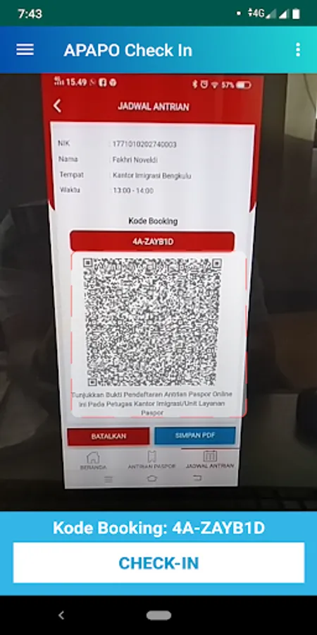 The APAPO Integrated Queuing System (SIAPO) is used as a validation of the APAPO booking passport applicant code at the TPI Bengkulu Class I Immigration Office as a condition for obtaining queues for photo and biometric data retrieval and interviews.