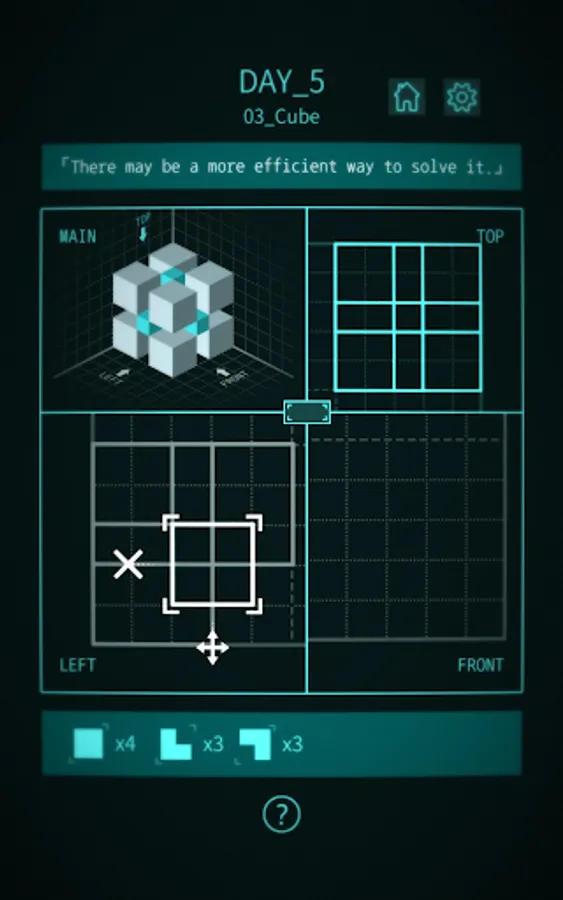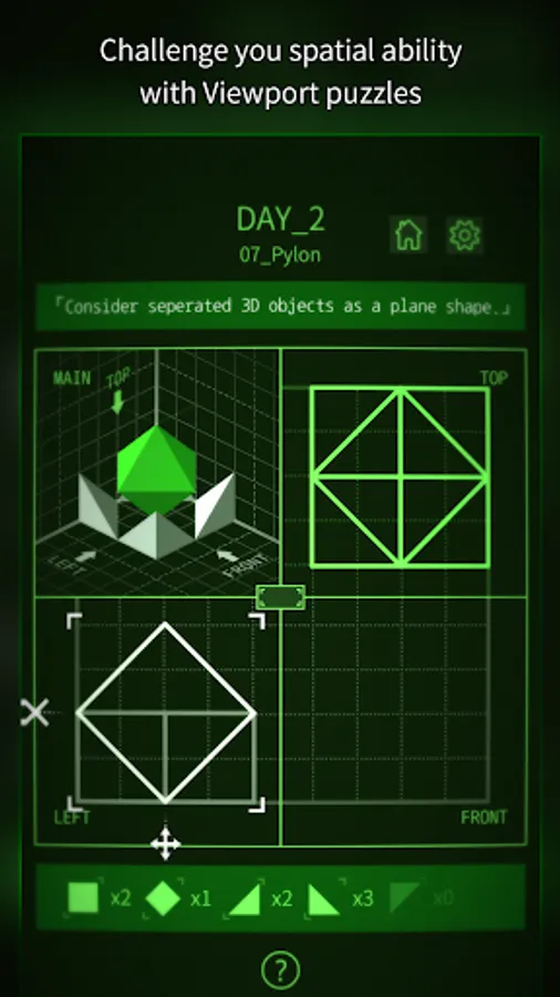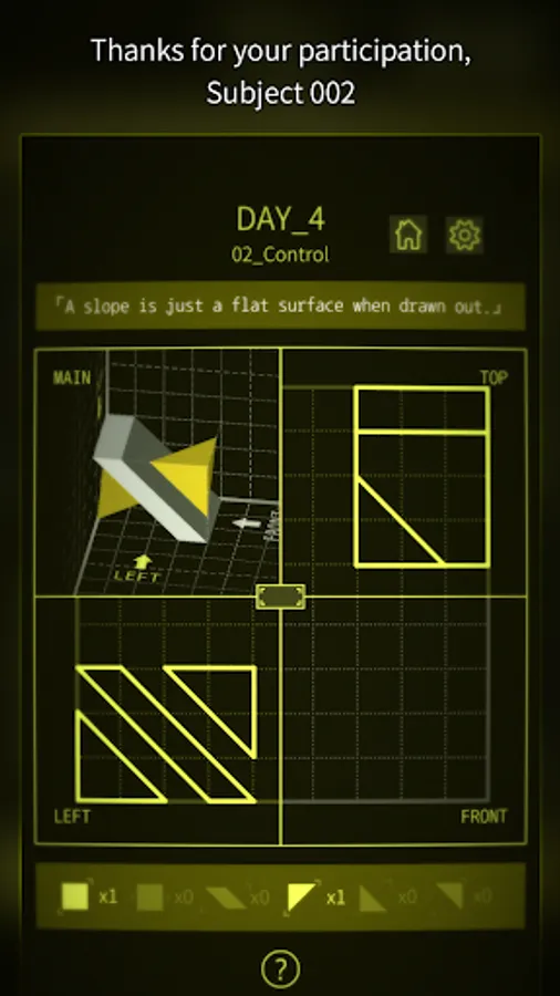 The game starts off with a simple question, 'How would this 3D object look like when observed from a certain angle?', then takes you to the next question, 'How can it be drawn out?'.