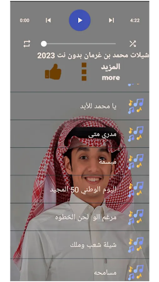 Chelated Muhammad bin Gharman without Net 2023 An application that contains all the chelations of the artist Muhammad bin Gharman 2023 and all the old chelations of the artist Muhammad bin Gharman, so that all chelated Muhammad bin Gharman are immediately added directly to the application as soon as they are released.