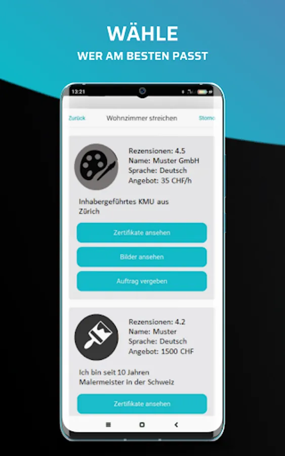 You don't have to search anymore, you find: just post your order. Our matching system notifies the service providers in your area that match your requirements. You then choose who is the best fit.