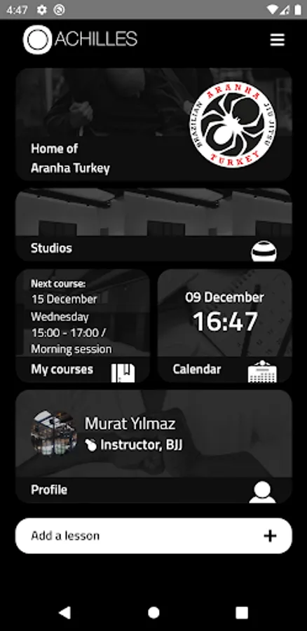 The application allows Achilles Studio instructors and students to easily register for courses. It allows instructors to rent studios, set course hours, and helps students to add course hours to their schedules.