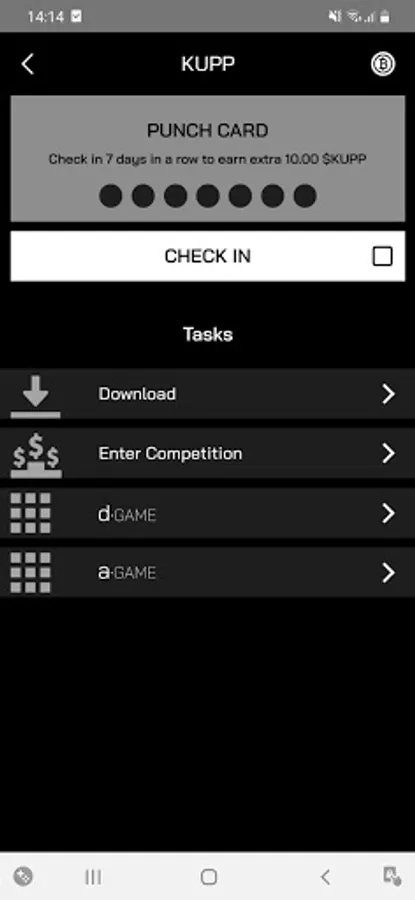Play games, complete missions and check in daily to earn crypto. With wallet feature, now you can collect your KUPP tokens and withdraw it whenever you reach the quota.
