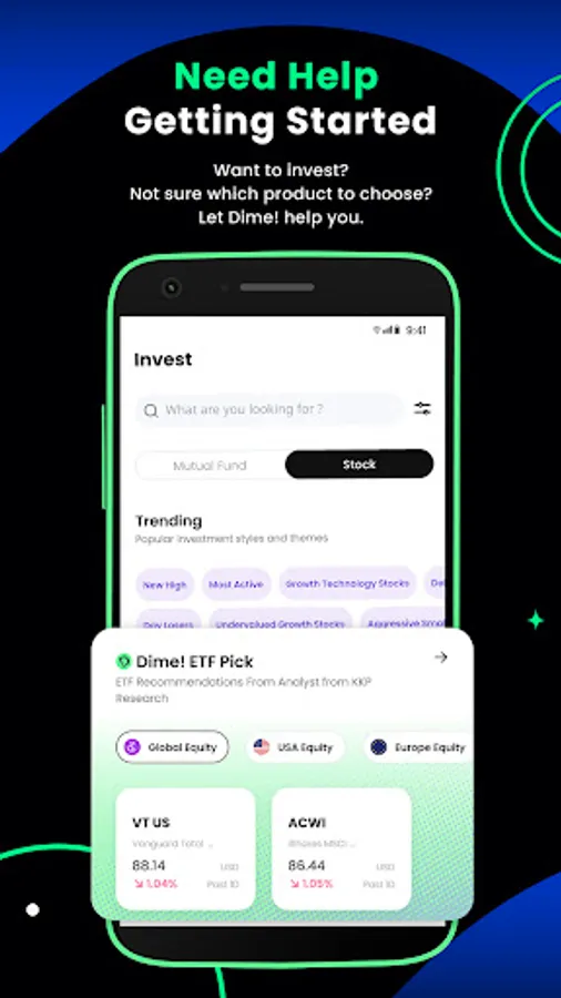 One share of your favorite stock can cost a fortune. At Dime!, you can invest in a portion of a share with your THB cash, starting at 50 THB.