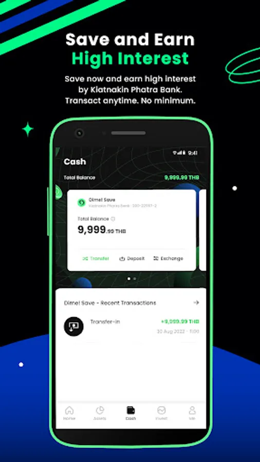 Save your money in our Dime! Save account and earn up to 3% interest from your first baht as designated by KKPB.