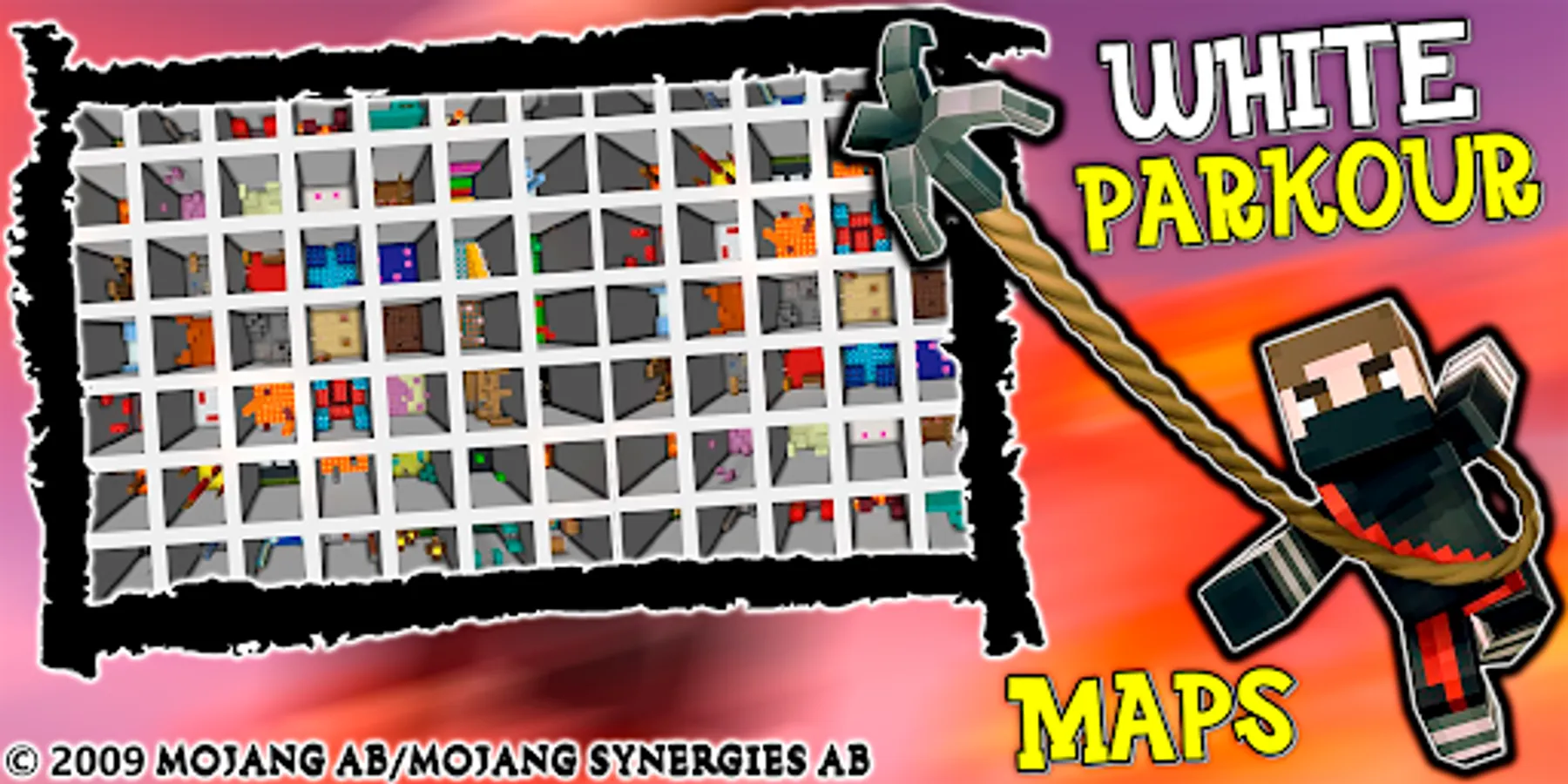 This Parkour Level Maps app provides mods, maps and skins for craft mcpe. Specifically in this pixel app you can find a map with an incredible amount of 150+ different parkour levels. But none of them are especially hard to complete. It’s best suited for beginners who don’t have too much experience with parkour. Each level is a small room with four white walls and somewhere hard to get is a button. Your task is to find a way to the button and press it to complete the level.