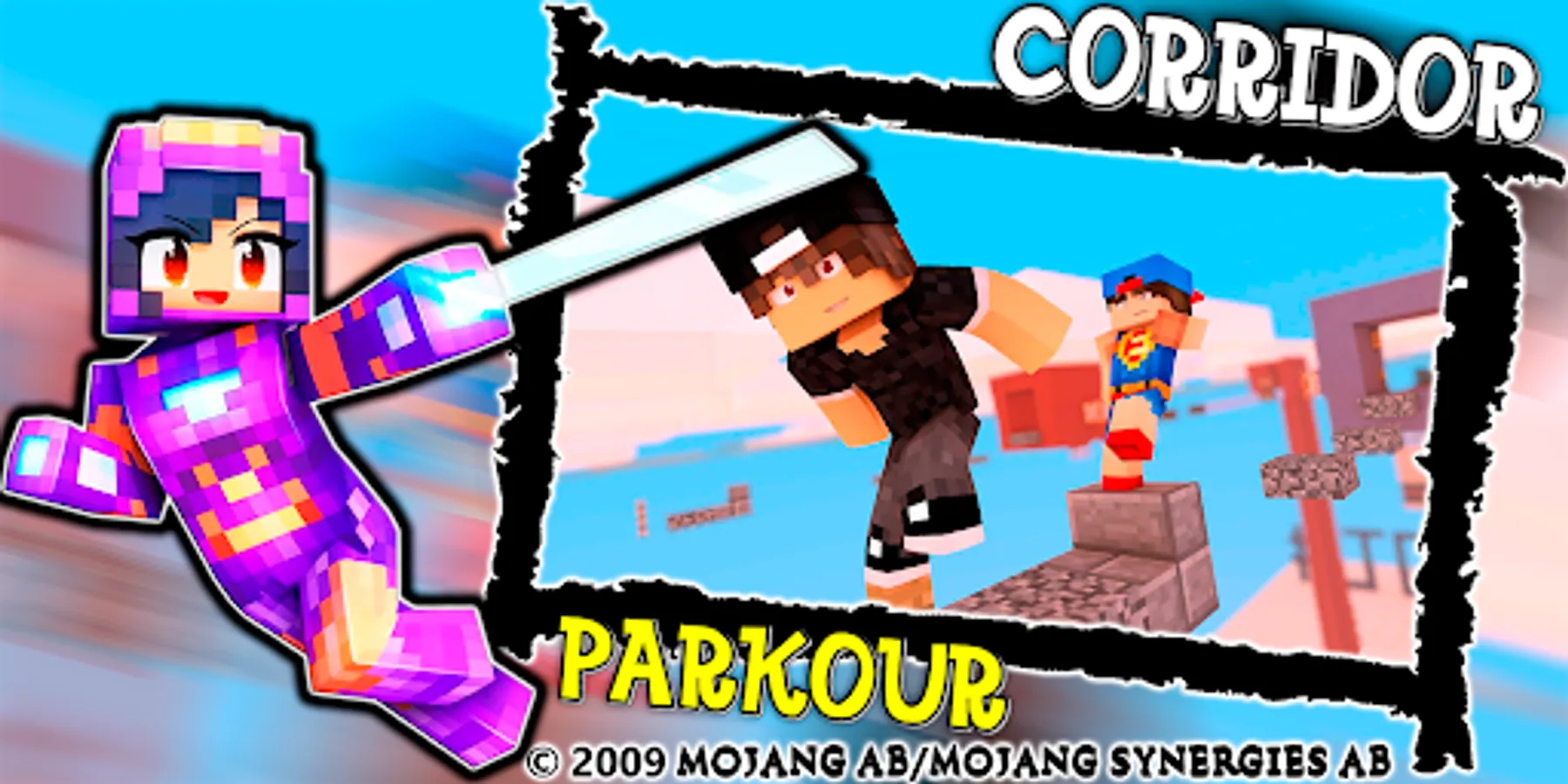 1. Parkour Corridor (This is the Pixel Parkour Corridor Map Craft for PE Blocks Game. This map adds an easy biome parkour with 30 stages and every stages has 16x16 blocks size with a specific theme. Your task is to complete all stages.)