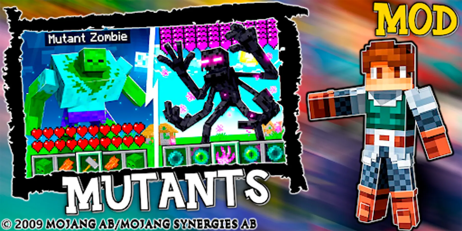 This Mutant Creatures Mod app provides mods, maps and skins for craft. Specifically in this pixel app you can find a a mod with the 16 powerful mutant creatures with incredible powers and custom battle pe swords. If you are looking for an add-on to increase the game difficulty a few notches then this is a great option. This means that the world will be a lot more difficult as each mutant is much stronger than their predecessors. Neither of the mutants get affected by fall damage or knockbacks. Mutant Zombie & Husk: This is basically a beefed up version of the ordinary zombie. With 150 Health, they cant be stopped however, when knocked down, it will rise and get stronger. They are able to summon mini zombies that last for around 20 seconds. Using flint and steel when knocked down can will be able to defeat these Mutants.