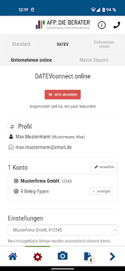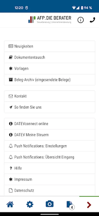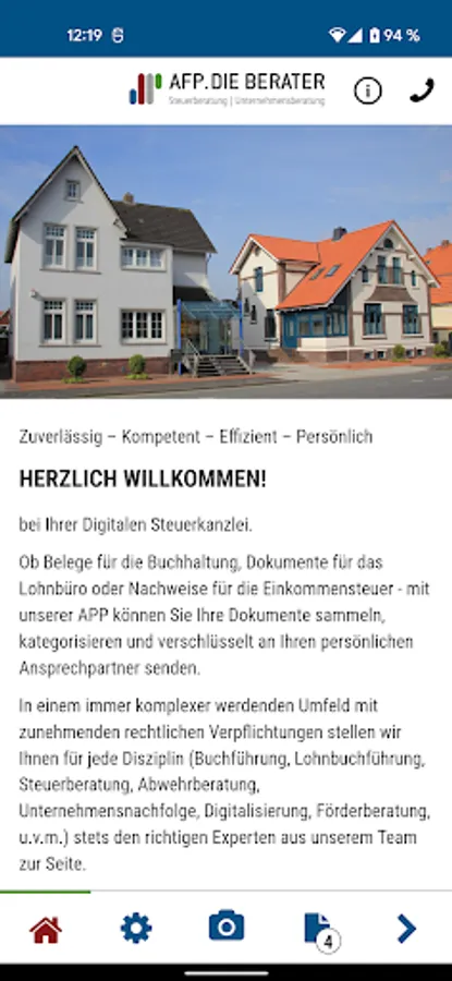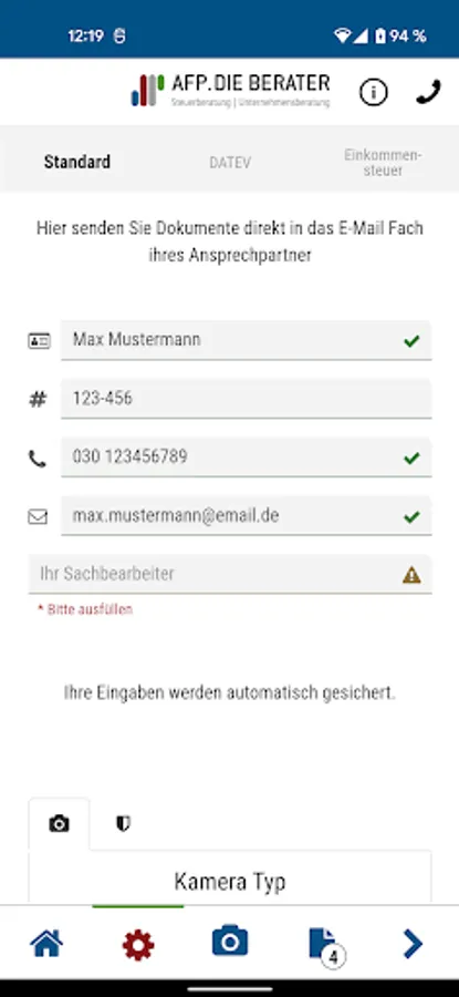 With the help of this app, you can send receipts, documents and other papers to Dr. Frevert & Partner GbR.