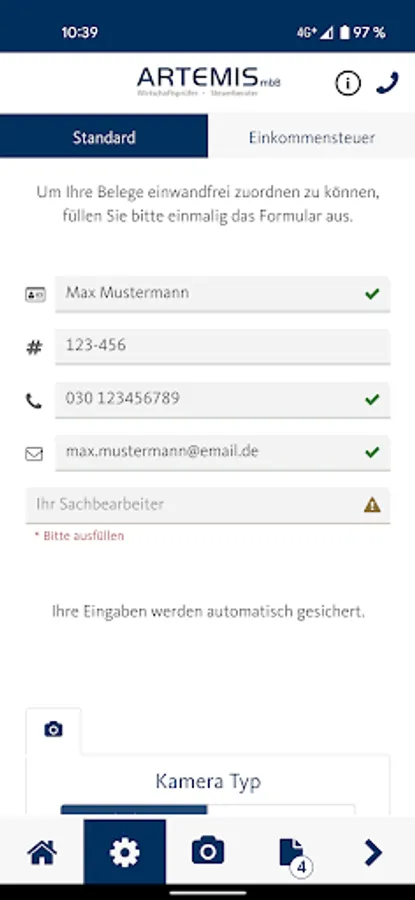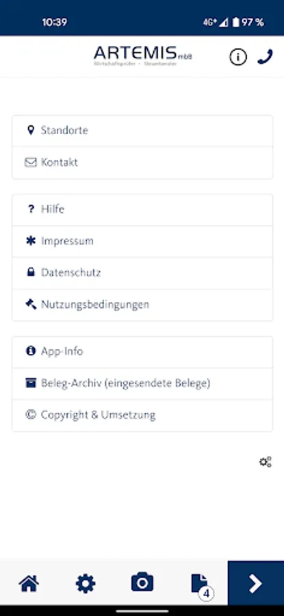 With the help of this app, receipts, documents and other papers can be sent to Artemis quickly, securely and conveniently.