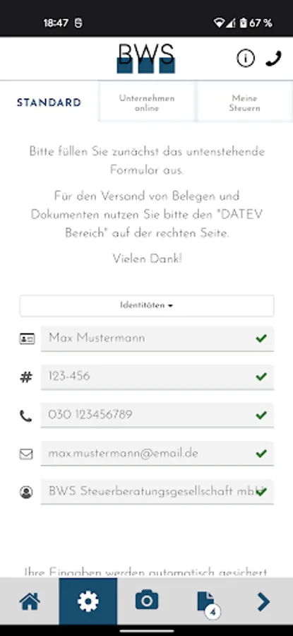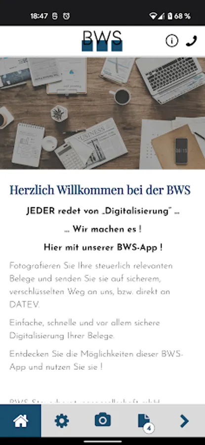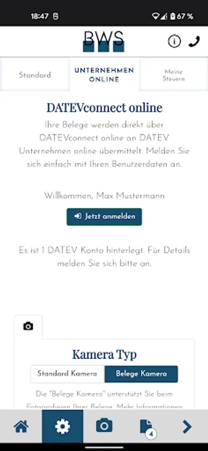 With the help of this app, receipts, documents and other papers can be sent to DATEV or BWS quickly, securely and conveniently.