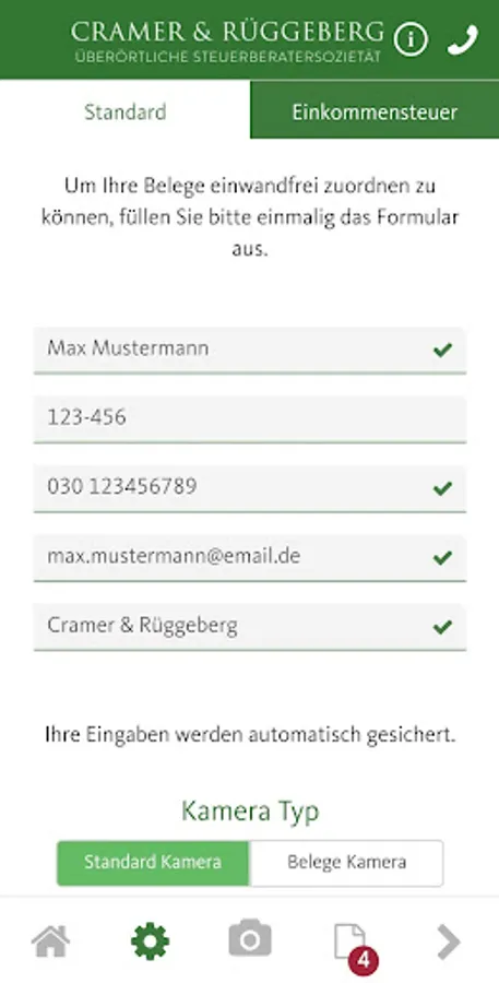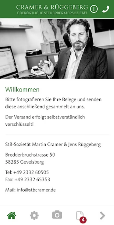 With this app, documents, documents and other documents can be sent quickly, safely and comfortably to the tax office Cramer & Rüggeberg.