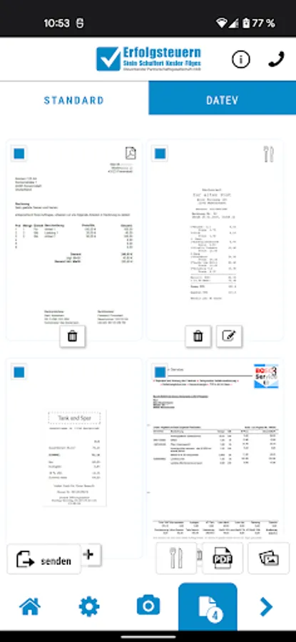 Simply take one or more photos of your receipts and send them with one click directly from the app to Income Taxes - Stein Schuffert Kesler Filges StB PartGmbB
