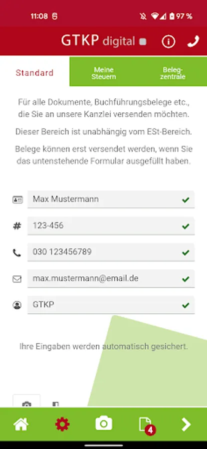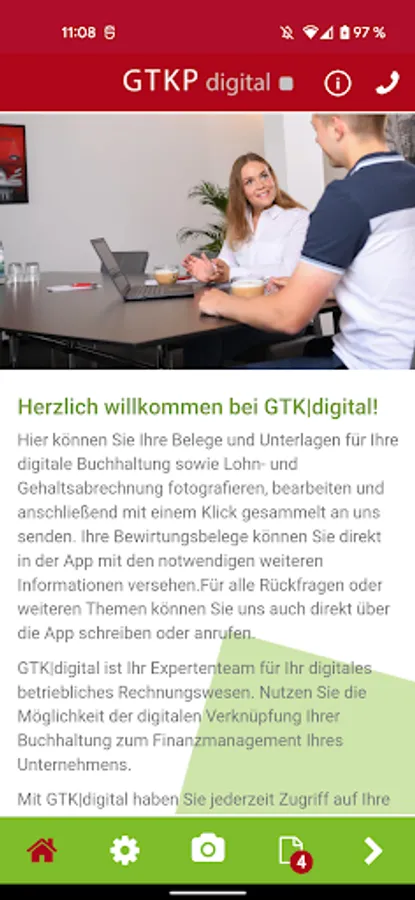 GTKP | digital - our app for your digital bookkeeping and payroll accounting! With the help of this app, you can easily and conveniently send documents, receipts and other papers to us. The shipping is of course encrypted!