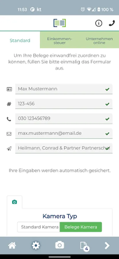 You can easily take pictures of your receipts, if desired edit and then send a single click directly from the app to us. As a special feature we offer the immediate processing of all necessary information for your refreshment expenses.