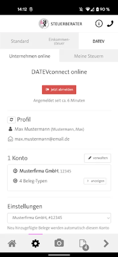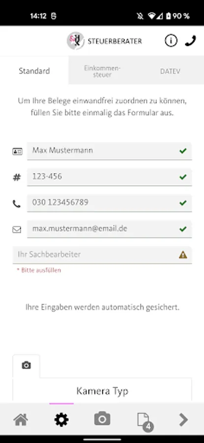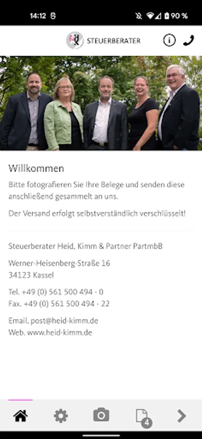 Thanks to the app, receipts, documents and other papers can be sent quickly, securely and easily to the tax consultants Heid, Kimm & Colleagues. Simply use the camera on your mobile device and send the desired documents directly to the relevant clerk.
